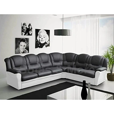 Texas Big Corner Sofa Suite Black and White Faux Leather