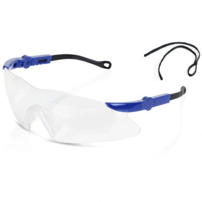 Lightweight spectacles with ultra soft nose bridge 10 Curve single Poly Carbonate lens Fully adjustable side arms with temple ratchet. Adjustable Neck Cord. Conform to EN166: Optical Class:1 F T - (Low impact energy at extreme temperatures) 2C-1.2 - UV Filter