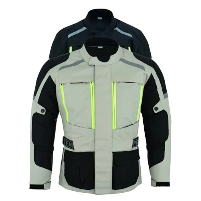 Texpeed Mens Motorcycle Jacket Waterproof Off White Beige Grey Textile Cordura With Biker Motorbike CE Armour (EN 1621 1) 2XL