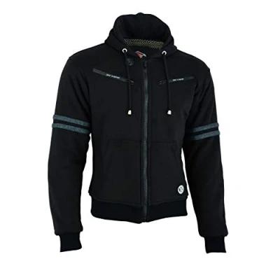 Texpeed Mens Motorcycle Motorbike Biker Hoody Jacket Hoodie Made With Protective Aramid And CE Armour (EN 1621 1) Protection Black Grey XL