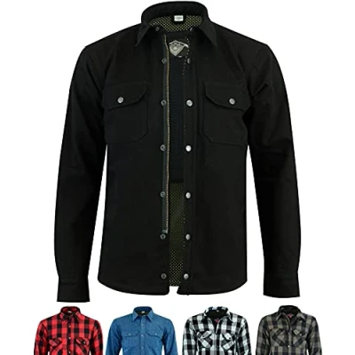Texpeed Mens Motorcycle Motorbike Jacket Biker Shirt Made with 280gsm Aramid and Protective CE Armour (EN 1621 1) Black 8XL