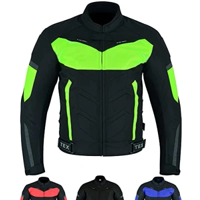 Texpeed Mens Yellow Hi Vis Motorcycle Motorbike Biker Waterproof Jacket With CE Armour (EN 1621 1) L