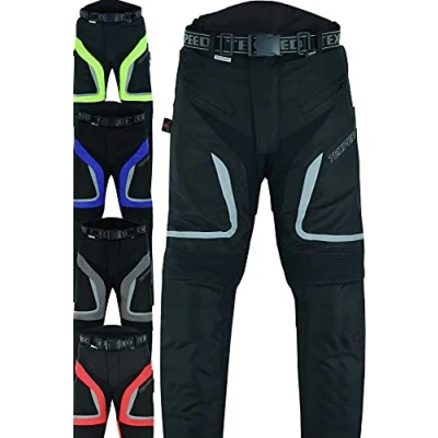 Texpeed Motorcycle Biker Trousers Mens Motorbike Waterproof Textile Cordura Pants With Protective CE Armour (EN 1621 1) Black 42W / 30L
