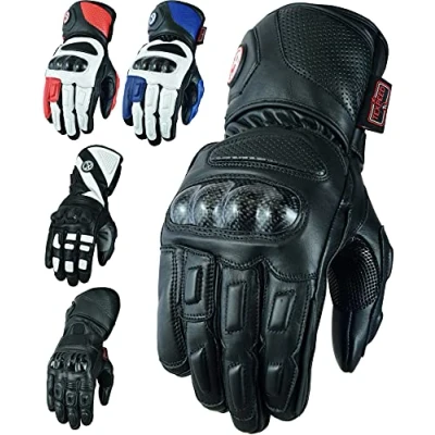 Texpeed Motorcycle Mens Leather Gloves Motorbike Moped ATV Biker Riding With CE Knuckle Armour Protection Black Short M