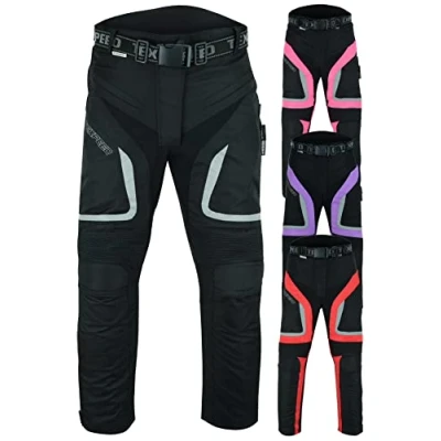 Made from a quality 600D korean cordura material complete with Reissa lining to make the product waterproof. Removable approved knee and hip armour included. The trousers feature x2 external pockets and stretch material to the back of the trousers for added comfortable when riding Easy access taking the trousers on and off with a large ankle zip and velcro strap for tightening at the bottom of the trousers. Reflective 3M scotchlite reflective strip on the ankles & front helping you to be seen at night and offer a stylish design. A stylish yet versatile pair of trousers offering some great features including 8" attachment zip to attached the trousers to your jacket. Adjustable waist belt.