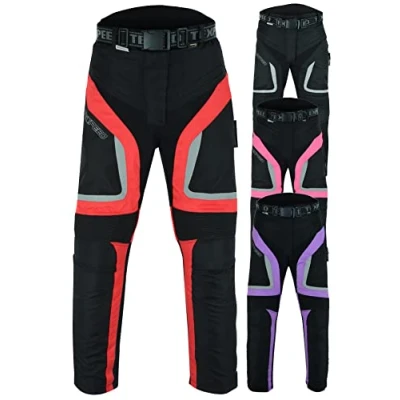 Texpeed Womens Motorcycle Biker Trousers Ladies Cordura Waterproof Textile With Protective Motorbike Armour (EN 1621 1) Red 40W / 30L