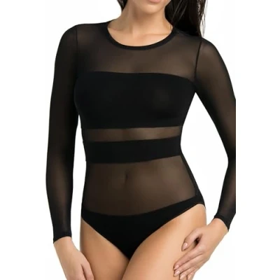 Teyli Bodysuit Women's Body Elegant Mesh Top Long Sleeve