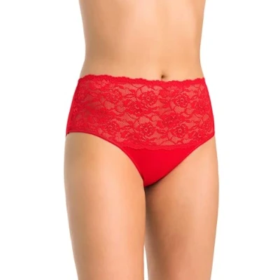 Teyli Women's Knickers High Waisted Briefs Cotton Floral Lace Full Comfort Breathable Stretchy Panties Violetta Red