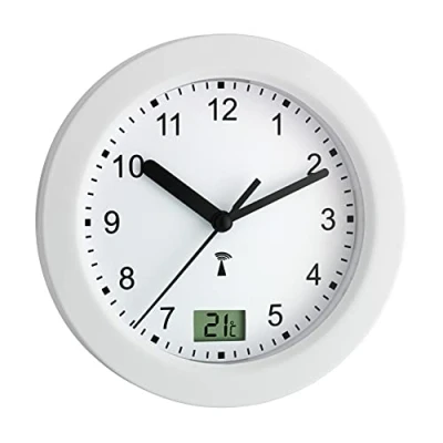TFA Dostmann 60.3501 Analogue Splash Proof Wireless Bathroom Clock with Temperature Display (White)