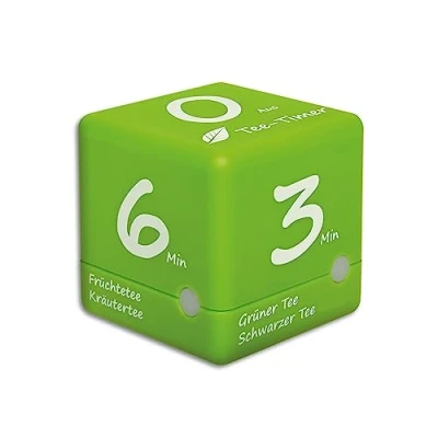 Time management: ideal for all tea lovers, there is a brewing time for the most important types of tea How it works: place the display with the right side up and time runs immediately; with acoustic drain signal (loud, quiet, off) Application: ideal as a tea timer but can also be used as a kitchen timer, sports timer, egg timer, homework timer, time cube, timer for debates or as a game timer Remaining time: Clear and easily recognisable display of the remaining time of the set cube timer (including pre-alarm) Power supply: requires 2 x 1.5V AAA batteries (not included)
