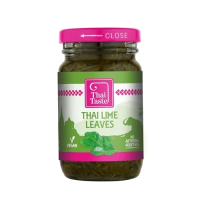 Thai Taste Thai Lime Leaves 114g add the vibrant, aromatic essence of Thailand to your cooking. Sourced from the Kaffir lime tree, these leaves impart a bright citrus-floral aroma, ideal for authentic Thai dishes like Tom Yum soup and green curry. No allergens; store in a cool, dry place.
