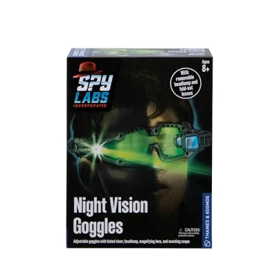 CONDUCT NIGHTTIME MISSIONS LIKE A DETECTIVE: Use the fold-out magnifying lens and scouting scope to observe distant details in low light—perfect for stealthy investigations and imaginative role-play. REMOVABLE GREEN LED HEADLAMP: Simulates night-vision technology to enhance visibility in the dark—detach and use as a standalone flashlight for added versatility during spy adventures. REALISTIC SPY GEAR EXPERIENCE: Designed to mimic professional surveillance tools, these goggles offer immersive play for aspiring sleuths—ideal for mystery-solving at home or outdoors. SUITABLE FOR AGES 8+: One-size-fits-all design with safe, kid-friendly materials—supports STEM learning through exploration of optics, observation, and detective techniques. BOOSTS FOCUS & OBSERVATIONAL SKILLS: Encourages attention to detail, spatial awareness, and deductive reasoning through hands-on exploration of sound and sight-based investigations., Manufacturer: Thames & Kosmos