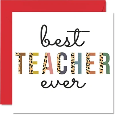 MAKE THEM SMILE WITH THIS HEARTFELT THANK YOU CARD: This exceptional quality thank you card for her or him shows the design "Best Teacher Ever". If you are looking for funny thank you greetings cards for men, then then this thank you card is bound to make them laugh. Not just for an appreciation gifts for School, Music or PE Teacher, Headteacher, Childminder, Sports Coach or Colleague. WHAT DO YOU GET: The card is printed on one side and BLANK ON THE INSIDE to allow you to write your very own message. The unique fun design is printed on a specially sourced and environmentally responsible board. At 360 microns thick the natural white one-sided gloss board has a quality look and feel. Supplied with a coloured gummed envelope to complement the design and ready to be sealed and sent in the post. Thank you card single. NO INK SMUDGES: There is nothing worse than writing inside a card to find that the shiny surface makes the ink smudge. This is why we use a high quality one sided coated board. The uncoated side will absorb more of the ink from your pen to make smudging a thing of the past. Thank you cards single, thank you teacher gifts, football thank you cards, kids thank you cards. SIZES: Greeting Card = 145mm x 145mm, Envelope = 155mm x 155mm, Card Thickness = 360 micron. Great thank-you cards from kids. Thank you cards for kids, childrens thank you cards, large thank you card, thankyougift, coach me cards, teacher gifts cards, thank you for helping me grow. MADE AND QUALITY CHECKED IN THE UK: We print and manufacture all our product right her in the UK so you can be sure of a fast turnaround and a product that is expertly made. Using environmentally responsible premium board our card is conscious of the responsible management of the world's forests - thank you cards teacher, thank you gifts for teacher, thank you team gifts.