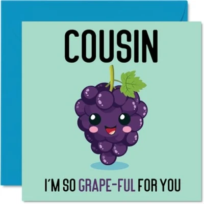 Thank You Cards for Cousin Grape Ful Funny Happy Birthday Card from Family Relative, Gifts, 145mm x Joke Greeting Women Men