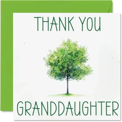 Thank You Cards for Granddaughter Colourful Green Tree Thankyou Her Women, Heartfelt Appreciation Card, 145mm x So Much Greeting Gifts