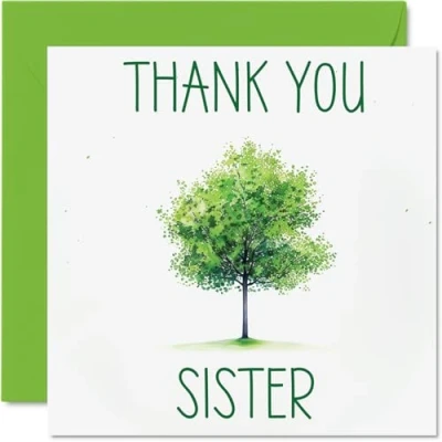 Thank You Cards for Sister Colourful Green Tree Thankyou Her Women, Heartfelt Appreciation Card, 145mm x So Much Greeting Gifts