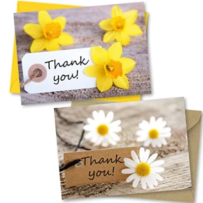 THANKYOU CARD MULTIPACK – Pack contains 6 premium A6 (105 x 148mm) Cards (2 designs x 3 of each). Cards supplied folded with matching envelopes. MADE IN THE UK – Designed, printed and packed in the UK, our cards and packaging are made from board which is manufactured in Europe. Cards are blank on inside allowing you to write your own unique message. GREETINGS CARDS FOR ALL – Perfect for all your friends, family, work colleagues or customers. PREMIUM QUALITY THICK CARD – 365 Microns sturdy card with luxury feel. Supplied with premium quality White Diamond flap envelopes. Supplied in protective Biodegradable & Compostable clear bag. Made with minimum 80% renewable bio-based content. FSC – Our products follow strict processes to bear FSC endorsement.