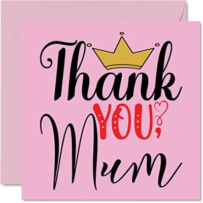 MAKE THEM SMILE WITH THIS HEARTFELT THANK YOU CARD: This exceptional quality thank you card for her or him shows the design "Thank You Mum". If you are looking for funny thank you greetings cards for men, then then this thank you card is bound to make them laugh. Not just for an appreciation gifts for School, Music or PE Teacher, Headteacher, Childminder, Sports Coach or Colleague. WHAT DO YOU GET: The card is printed on one side and BLANK ON THE INSIDE to allow you to write your very own message. The unique fun design is printed on a specially sourced and environmentally responsible board. At 360 microns thick the natural white one-sided gloss board has a quality look and feel. Supplied with a coloured gummed envelope to complement the design and ready to be sealed and sent in the post. Thank you card single. NO INK SMUDGES: There is nothing worse than writing inside a card to find that the shiny surface makes the ink smudge. This is why we use a high quality one sided coated board. The uncoated side will absorb more of the ink from your pen to make smudging a thing of the past. Thank you cards single, thank you teacher gifts, football thank you cards, kids thank you cards. SIZES: Greeting Card = 145mm x 145mm, Envelope = 155mm x 155mm, Card Thickness = 360 micron. Great thank-you cards from kids. Thank you cards for kids, childrens thank you cards, large thank you card, thankyougift, coach me cards, teacher gifts cards, thank you for helping me grow. MADE AND QUALITY CHECKED IN THE UK: We print and manufacture all our product right her in the UK so you can be sure of a fast turnaround and a product that is expertly made. Using environmentally responsible premium board our card is conscious of the responsible management of the world's forests - thank you cards teacher, thank you gifts for teacher, thank you team gifts.