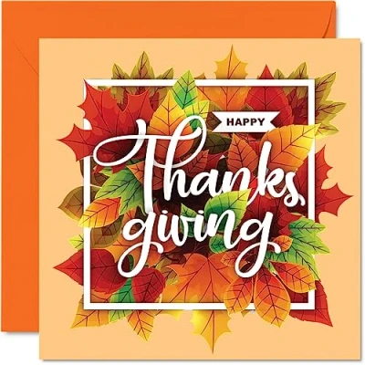 MAKE THEM SMILE WITH THIS SPECIAL CARD THANKSGIVING: This exceptional quality thanksgiving card for them shows a autumnal design with the wording "Happy Thankgiving". If you are looking for cards to show gratitude and give thanks, then then this card is just what you are looking for. This could also be for Mom, Dad, Son, Daughter, Grandad, Nanny, Cousin, Auntie or Uncle. WHAT DO YOU GET: The card is printed on one side and BLANK ON THE INSIDE to allow you to write your very own message. The unique design is printed on a specially sourced and environmentally responsible board. At 360 microns thick the natural white one-sided gloss board has a quality look and feel. Supplied with a coloured gummed envelope to complement the design and ready to be sealed and sent in the post.. NO INK SMUDGES: There is nothing worse than writing inside a card to find that the shiny surface makes the ink smudge. This is why we use a high quality one sided coated board. The uncoated side will absorb more of the ink from your pen to make smudging a thing of the past. thanksgiving family cards, designer thanksgiving cards, thanksgiving gift cards, gifts for couples at thanksgiving. SIZES: Greeting Card = 145mm x 145mm, Envelope = 155mm x 155mm, Card Thickness = 360 micron. Thankgiving card to mom, special family thanksgiving card, thanksgiving party cards, thanksgiving cards. MADE AND QUALITY CHECKED IN THE UK: We print and manufacture all our product right her in the UK so you can be sure of a fast turnaround and a product that is expertly made. Using environmentally responsible premium board our card is conscious of the responsible management of the world's forests.