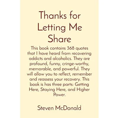 Thanks for Letting Me Share: This book contains 368 quotes that I have heard from recovering addicts and alcoholics. They are profound, funny, ... recovery. is has three parts: Get