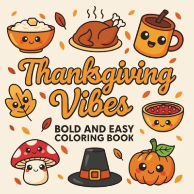 Thanksgiving Vibes Bold and Easy Coloring Book: Cute Cozy Fall Pages for Adults, Teens Kids