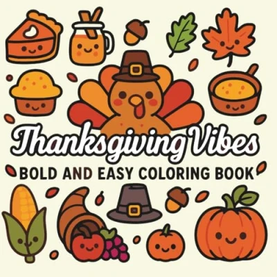 Thanksgiving Vibes Bold and Easy Coloring Book: Cute Cozy Fall Pages for Kids, Adults Teens