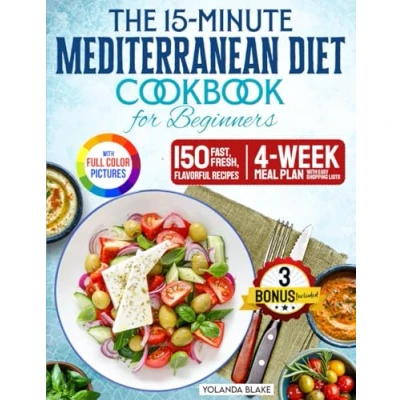 The 15 minute Mediterranean Diet Cookbook for Beginners: 150 Fast, Fresh, and Flavorful Recipes with 4 week Meal Plan Easy Shopping Lists