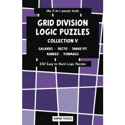 the 5 in 1 puzzle book Galaxies, Recto, Snake Pit, Raneko, Yonmasu: Grid Division Logic Puzzles Collection 250 Easy to Hard with Solutions