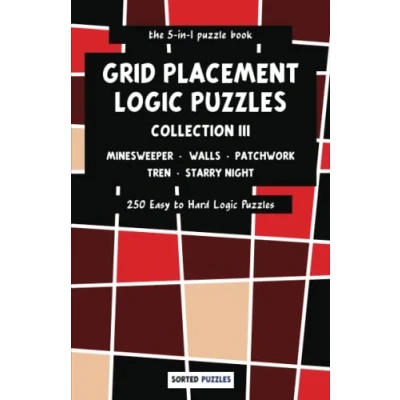 the 5 in 1 puzzle book Minesweeper, Walls, Patchwork (Tatami), Tren, Starry Night: Grid Placement Logic Puzzles Collection 3 250 Easy to Hard with Solutions