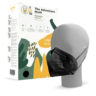 Top-Tier Protection: The Adventure Face Mask is FFP3 Certified, the highest filtration rating under the European EN 149 standard for respiratory masks. These masks filter out 99% of airborne particles, an excellent choice even as a PPE mask Small Comfortable Design: Our EU certified face masks feature ear loops made of premium straps that provide a snug fit that doesn't your ears when used for an extended period of time. This mask is designed for smaller faces 5-Layer Filtration: This face mask provides the highest level of protection as our 5-layer filtration blocks plenty of airborne particles. It's an excellent anti-pollen face mask, pollution mask, cleaning mask, dust mask, and allergy mask Secured and Stylish: FFP3 masks don't have do be plain, at least that's what we believe in. Match your safety with your style with this black, or get our FFP3 masks in white or blue! The Versatile Choice: Whether you're doing some home crafting, or sweeping through the city pollution during your daily commute, our safety masks for dust and pollution can protect you from the harshest conditions and riskiest environments