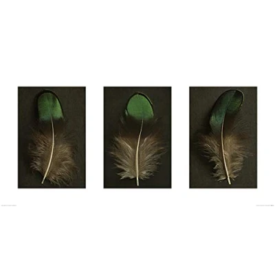 The Art Group Alyson Fennell (Green Peacock Feather Triptych) Print, Paper, Multi Colour, 50 x 100 1.3 cm