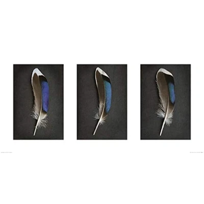The Art Group "Alyson Fennell Sapphire Mallard Feather Triptych Paper Print, Multi Colour, 50 x 100 1.3 cm