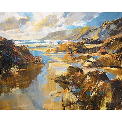 The Art Group "Chris Forsey Waves and Evening Sun, North Cornwall Canvas Print, Cotton, Multi Colour, 1.80 x 40.00 50.00 cm