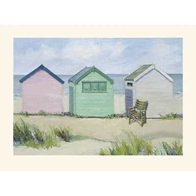 The Art Group Jane Hewlett Beach Huts Mounted Print, Multi Colour, 30 x 40 1.3 cm