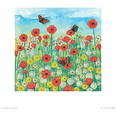 The Art Group Jo Grundy (Peacocks and Poppies) Print 40 x 40cm, Paper, Multicoloured, 1.3 cm