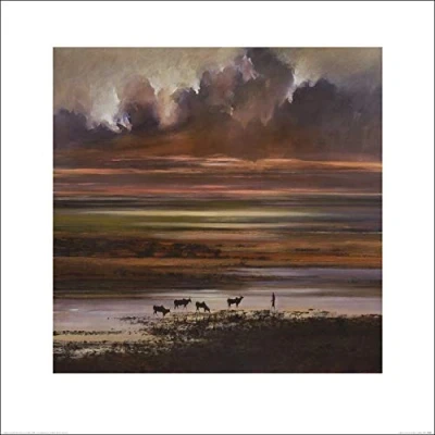 The Art Group "Jonathan Sanders Cattle At Sunset Paper Print, Multi Colour, 60 x 1.3 cm