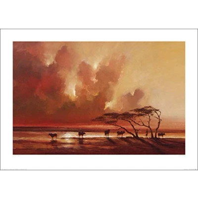 The Art Group "Jonathan Sanders Cattle Drinking Paper Print, Multi Colour, 50 x 70 1.3 cm