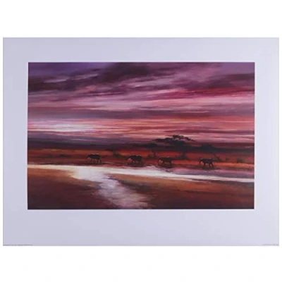 The Art Group Jonathan Sanders (Four Elephants) Print, Paper, Multi Colour, 60 x 80 1.3 cm