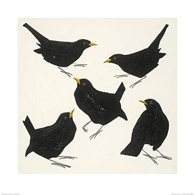 The Art Group Julia Burns (Blackbirds) Print 60 x 60cm, Paper, Multicoloured, 1.3 cm