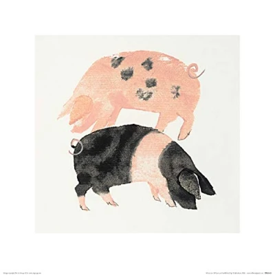 The Art Group Julia Burns (Gloucester Old Spot and Saddleback Pigs) Print 40 x 40cm, Paper, Multicoloured, 1.3 cm