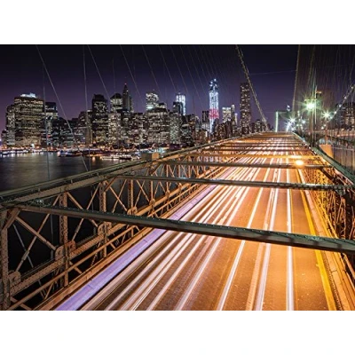 The Art Group "Light Trails, Brooklyn Bridge, New York David Clapp Canvas Print, Multi Colour, 60 x 80 1.3 cm