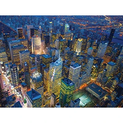 The Art Group Manhattan at Night Jason Hawkes Canvas Print, Wood, Multi Colour, 60 x 80 1.3 cm