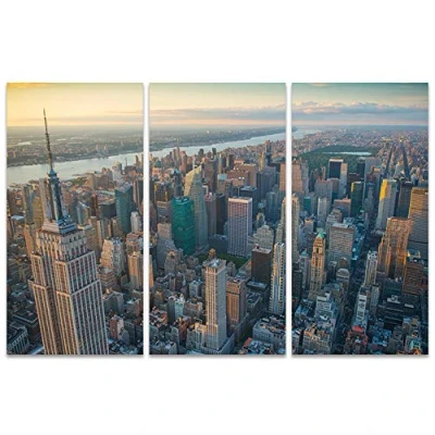 The Art Group Manhattan Morning Jason Hawkes Canvas Print, Wood, Multi Colour, 10 x 150 1.3 cm