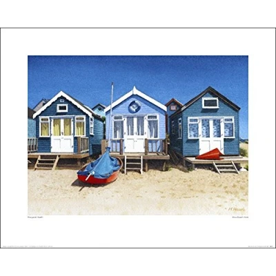 The Art Group "Margaret Heath Blue Beach Huts Paper Print, Multi Colour, 40 x 50 1.3 cm