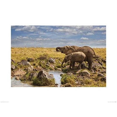 The Art Group "Mario Moreno Elephants of Maasai Mara Paper Print, Multi Colour, 60 x 80 1.3 cm