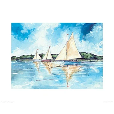 The Art Group "Stuart Roy Three Boats Paper Print, Multi Colour, 40 x 50 1.3 cm