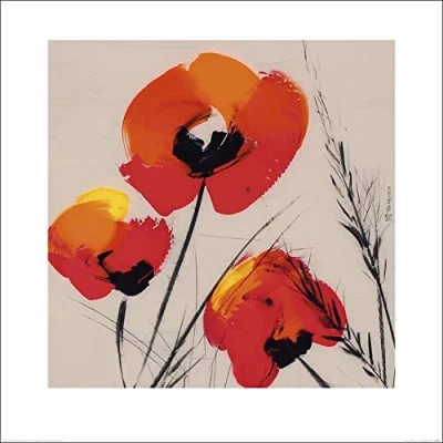 The Art Group Tibi Hegyesi (Three Poppies Grey) Print 60 x 60cm, Paper, Multicoloured, 1.3 cm