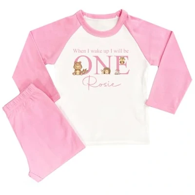 The Baby Box UK Girls Personalised Birthday Pyjamas When I Wake Up Will Be PJs 1st (Pink Woodland Animals, 2 3 Years)