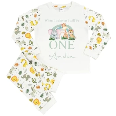 The Baby Box UK Personalised Birthday Jungle Pyjamas Girls Boys When I Wake Up Will Be PJs 1st (Jungle Sage Safari Rainbow, 3 4 Years)