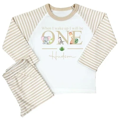 The Baby Box UK Personalised Birthday Pyjamas Boys Girls 1st PJs When I Wake Up Will Be (Beige Safari 2, 2 3 Years)